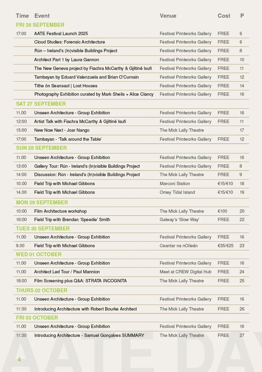It is with great pleasure that we welcome you to the Architecture at the Edge Festival 2025. The topic of this year’s Festival is centred on the theme of the ‘Unseen’. To make visible the often invisible factors that shape space. Our world is made up of a complex combination of connections and influences that are often abstract and invisible, while simultaneously also being something physical which everyone experiences on a daily basis.